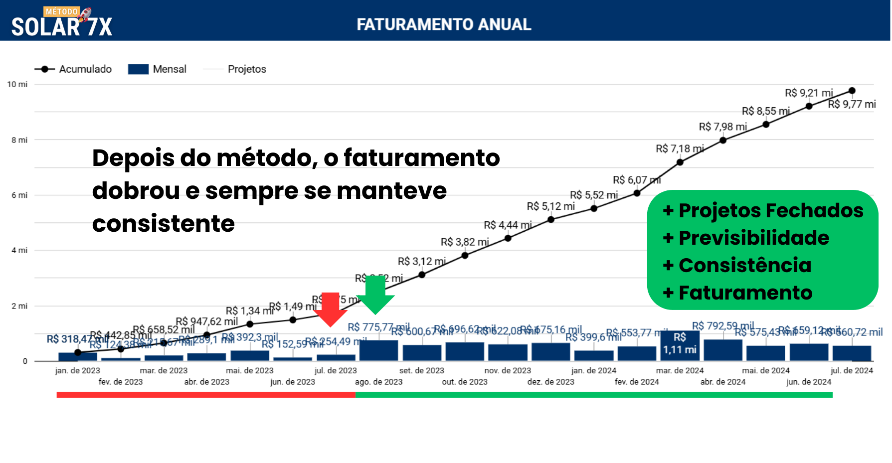 Depois de enfrentar e superar desafios comuns do setor, como dificuldade em gerar leads qualificados e aumentar as vendas sem depender de agências caras, desenvolvi o Método Solar 7X, um sistema claro e eficiente que já impactou empresas em todo o Brasil.